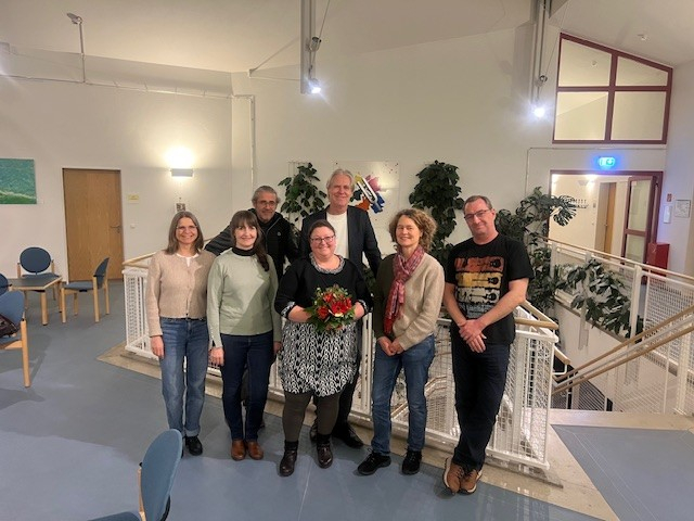 Zum neuen Schuljahr gab es in der KMS auch wieder einige personelle Veränderungen. Von links nach rechts: Stefan Bauer (neue Leitung der Außenstelle Taufkirchen), Robert Tausch (neuer Hausmeister), Max Pfaff (neuer Fachbereichsleiter Rock/Pop), Veronika Marschall (Betriebsratsvorsitzend), Min Kyoung Sim (neue Klavierlehrkraft), Sarah Kober (stellvertretende Schulleiterin), Claus Koch (neue Lehrkraft für Klarinette/Saxophon), Pantelis Milios (neue Gitarrenlehrkraft), Martin Selmeir (neue Lehrkraft für Blechblasinstrumente/Klavier/Elementare Musikklasse), Peter Hackel (Schulleiter). Die Schulleitung und die Betriebsratsvorsitzende wünschten allen in der ersten Vollkonferenz viel Erfolg in ihrer neuen Tätigkeit.